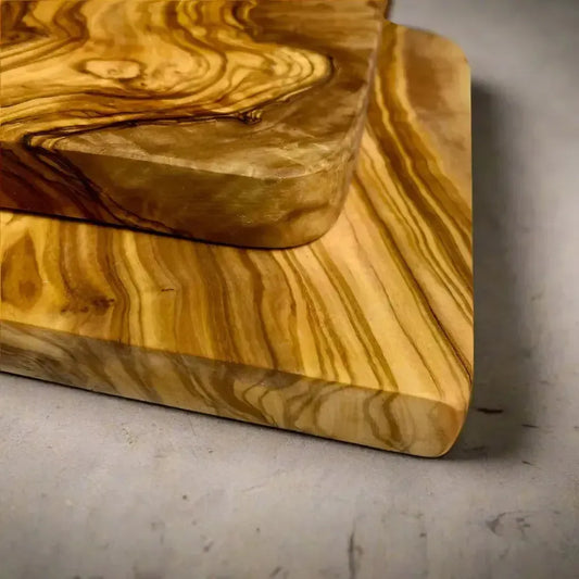2er Set Olivenholz Schneidebretter rechteckig mit Griff