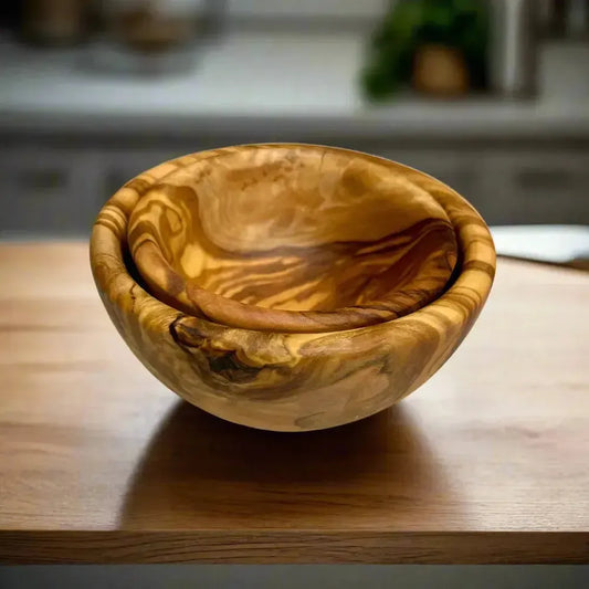 Unsere Olivenholz Küchenutensilien wie Schneidebretter, Schalen und Küchenhelfer werden aus massivem Holz gefertigt und in sorgfältiger Handarbeit veredelt. Die einzigartige Maserung und die aufwendige Verarbeitung machen jedes Stück zu einem langlebigen Unikat.