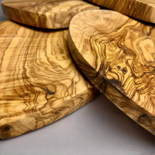 Unsere Olivenholz Küchenutensilien wie Schneidebretter, Schalen und Küchenhelfer werden aus massivem Holz gefertigt und in sorgfältiger Handarbeit veredelt. Die einzigartige Maserung und die aufwendige Verarbeitung machen jedes Stück zu einem langlebigen Unikat.